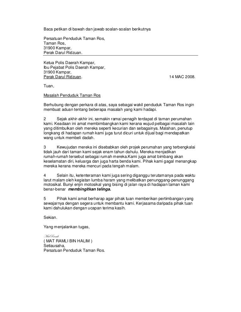Ini cocok di hampir semua contoh dan merupakan cara yang. Materi Pengayaan Un Bahasa Indonesia Smp M Ts 2014. Contoh Surat Rasmi Kepada Pihak Polis Contoh Surat Yang mulia Tuan Pengerusi Majlis Pengetua guru-guru rakan-rakan serta hadirin yang saya hormati sekalian.